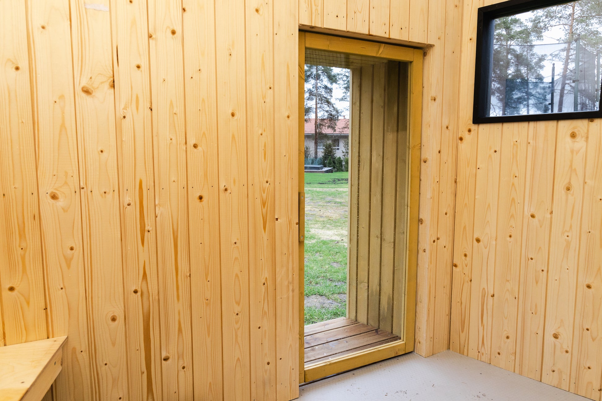 Finnish pine and spruce with 20mm exterior and 14mm wooden interior panels.